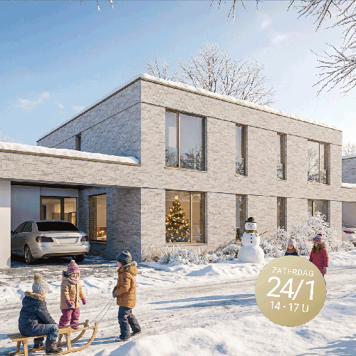 Zeven nieuwbouw gezinswoningen met een ruime leefruimte en op de verdieping 3 slaapkamers en een stijlvolle badkamer, een carport en een extra parkeerplaats en een ruime tuin. Opendeurdag 24/01/2026!